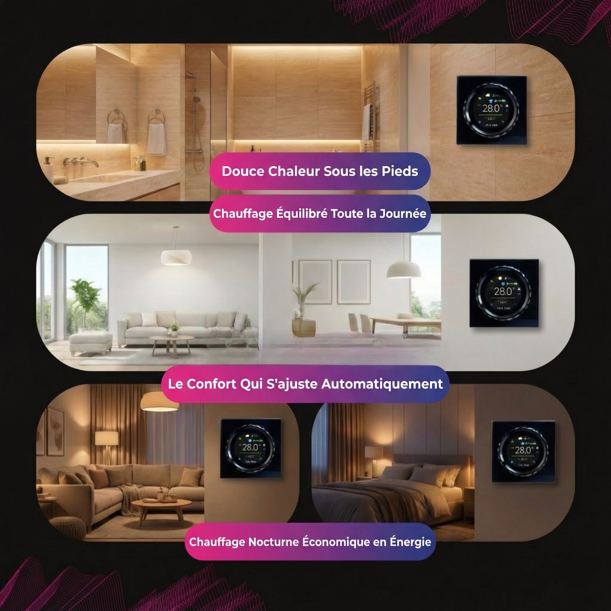 • Chaque pièce est parfaitement chauffée dès que vous rentrez à la maison.